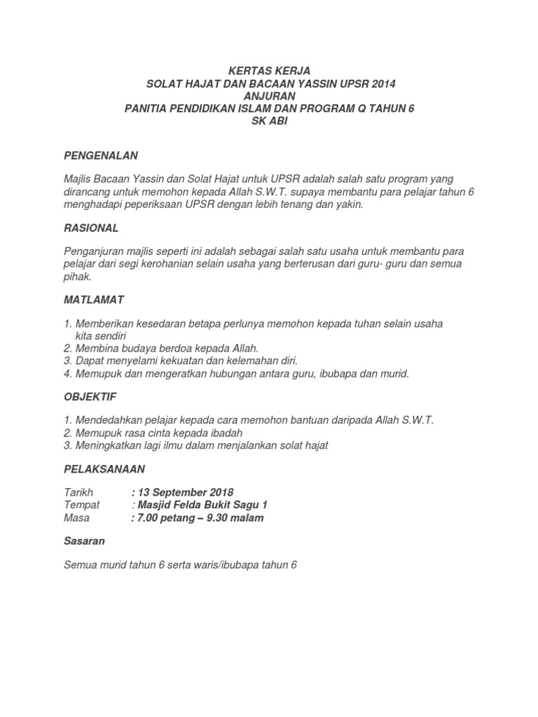 Kertas Kerja Bacaan Yasin Dan Solat Hajat Internship Ipg Pdf Document from reader017.vdocuments.mx Keinginan tersebut ditinjau baik yang berhubungan dengan hal duniawi atapun yang bersifat ukhrawi. Sholat hajat adalah salah satu sholat sunah yang sangat dianjurkan untuk dikerjakan, terutama saat memiliki hajat atau keinginan. Sholat hajat ialah sholat sunnah yang dikerjakan untuk meminta kepada allah swt supaya yang menjadi hajat kita cepat dikabulkan oleh allah. Kertas kerja audit (audit paperwork) adalah mata rantai yang menghubungkan antara catatan klien auditor dengan laporan audit. Sholat hajat adalah sholat sunnah yang dilakukan oleh seorang muslim saat memiliki hajat atau keinginan tertentu dan ingin diwujudkan allah swt. Jika anda masih menemukan kesulitan bisa menghubungi kami. Pengertian sholat hajat sholat hajat adalah shalat sunnat yang dikerjakan agar hajat (keinginan/kebutuhannya) dikabulkan allah. Sholat tersebut yang dinamakan sholat hajat.