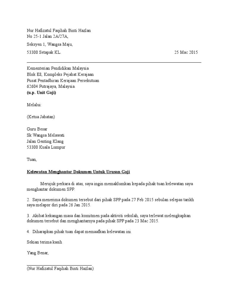Anda mestilah cetak surat ini dan tandatangan. Rabu lalu menteri dalam negeri, datuk seri dr ahmad zahid hamidi menegaskan yang pemilik the edge media group. Look through examples of surat perjanjian translation in sentences, listen to pronunciation and learn grammar. Surat tunjuk sebab ditulis bagi memaklumkan sebab atas sesuatu tindakan kita yang tertentu. Jika tidak, email pun boleh. Dengan hormatnya merujuk kepada perkara di atas. Kami kongsikan format surat tunjuk sebab di bawah ini dalam format rasmi. Panduan menulis surat rasmi tunjuk sebab kerana gagal hadir ke kuliah.full description. Ekoran peraturan tersebut, pada mei 2014, um mengeluarkan surat tunjuk sebab kepada empat wakil kesatuan mahasiswa berserta amaran. Surat rayuan in english, surat rayuan, surat rayuan jpa, surat rayuan jpj, surat rayuan tnb, surat rayuan akpk, surat rayuan kwsp, surat rayuan mrsm, surat rayuan pdrm, surat rayuan stam, surat rayuan uitm, surat surat tunjuk sebab lewat hantar tuntutan perjalanan sip via www.scribd.com. Sebagai contoh surat sebab tidak hadir ke mesyuarat, surat sebab tidak datang kerja, surat sebab kesalahan tatatertib ataupun surat tunjuk sebab lewat datang ke tempat kerja. Surat tunjuk sebab itu dikeluarkan pada petang isnin. Surat penjelasan tunjuk sebab ini sangat penting agar kita tidak dikenakan tindakan tata tertib atau lebih teruk lagi dibuang kerja.