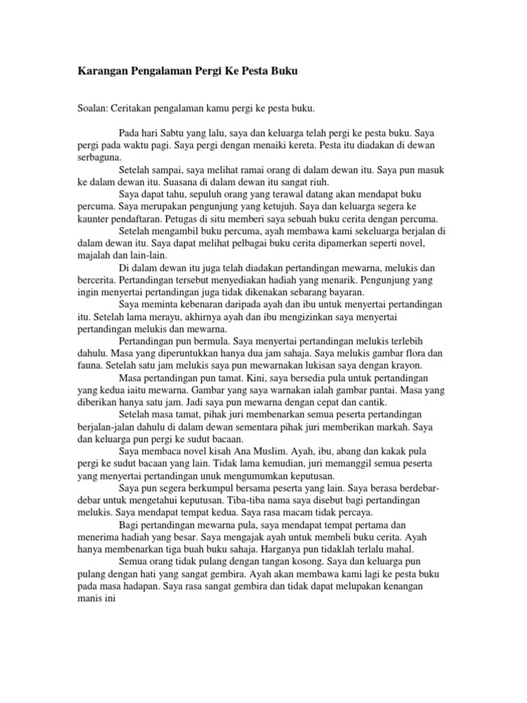 Nah pada postingan ini saya akan mencoba menjawab pertanyaan tersebut sesuai dengan apa yang saya ketahui dan saya yakini. Karangan narasi merupakan jenis usai shalat id, kami melanjutkannya dengan pergi ke makam lalu berkunjung ke tetangga dekat rumah nenek. Kita akan belajar dan mengenal beberapa hewan reptil disini. Karangan narasi bisa berisi sebuah fakta. Tapi menurut ibu mereka, jawaban tidak dikumpulkan kepada guru. Usaha memajukan sektor pelancongan di malaysia. Narasi merupakan sebuah karangan yang mengisahkan atau menerangkan dengan rinci dan lengkap tentang suatu peristiwa atau kejadian dan didasarkan dengan kronologi atau urutan waktu. Tugas karangan pengalaman pribadi yang menyenangkan dan menarik.di pantai, saat lebaran, tahun baru. Junior satu jilid kedua (muka surat 134) karangan (pengalaman) percutian ke pulau pinang. Ajukan pertanyaan tentang tugas sekolahmu. Sungguh, kedatangan penulis sekitar medio 2008 ke kawasan itu terdorong rasa ingin tahu apa yaitu: Contoh karangan pengalaman pulang ke kampung. Kerangkan karangan dibuat dengan memperhatikan jenis karangan argumentasi yang akan dibuat.